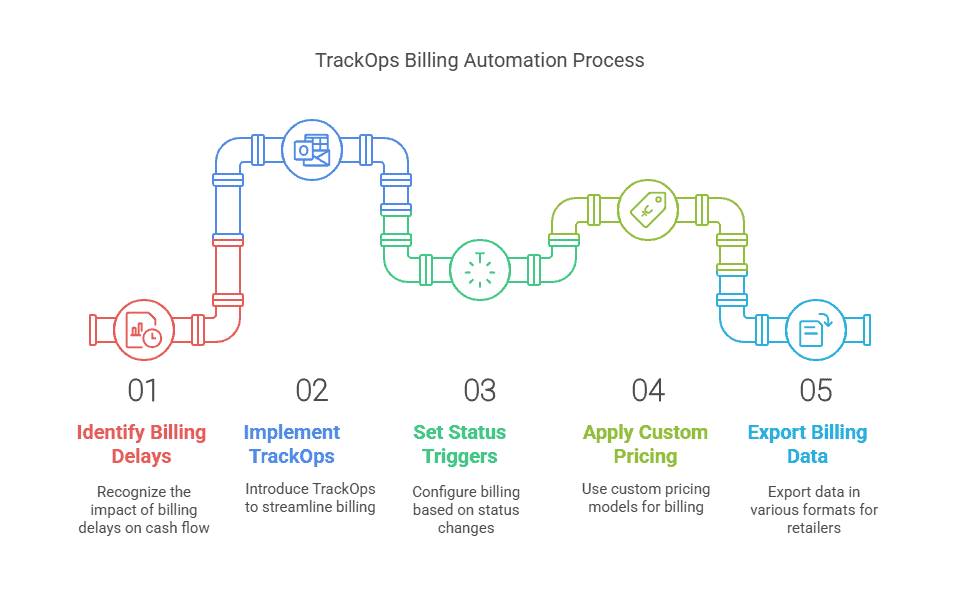 TrackOps Billing Automation is a smart engine that monitors delivery statuses and automatically creates invoices once a qualifying event occurs—like “Delivered” or “Picked Up.”